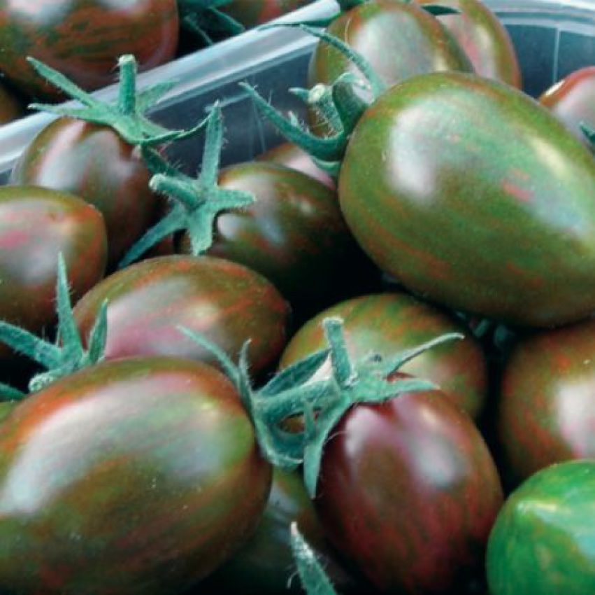 Cherry-plum “zebrato” con striatura del frutto di colore verde notevolmente marcato, si distingue per il colore rosso intenso della polpa, l’elevato contenuto di licopene e il notevole grado Brix. Frutto ovale appuntito, da 35-40 g, per raccolta a frutto singolo o grappolo. La pianta è compatta, di buona vigoria e con ciclo precoce.