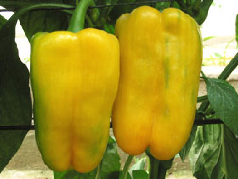 Ibrido del tipo giallo mezzo-lungo. La pianta è vigorosa, compatta, con fogliame ampio e ricoprente. Frutto regolare, di circa 15x8 cm, con 3-4 lobi e peso di circa 350 gr. Polpa spessa di sapore dolce e di colore giallo brillante a maturazione. Molto produttivo, adatto sia per serra che per pieno campo. E’ resistente a TMV (Virus mosaico del tabacco) e possiede una resistenza intermedia a PVY (Virus Y della patata).